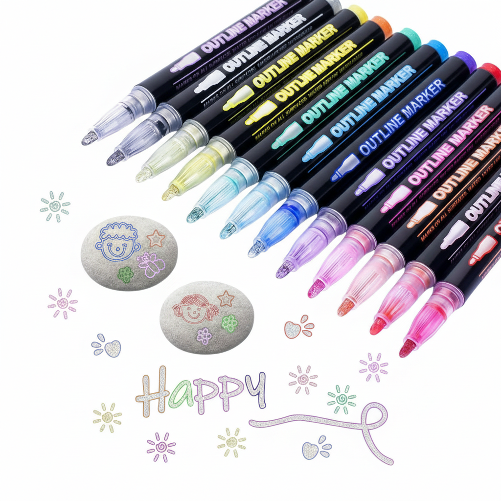 هذه الأقلام هي الاختيار المثالي للأطفال، الطلاب، الهواة، وصناع المحتوى، لأنها تضيف تأثيرًا مميزًا لأي لوحة، دفتر، بطاقة تهنئة أو أعمال يدوية.