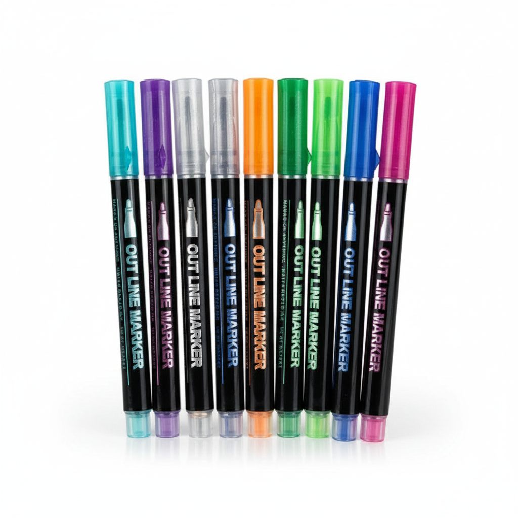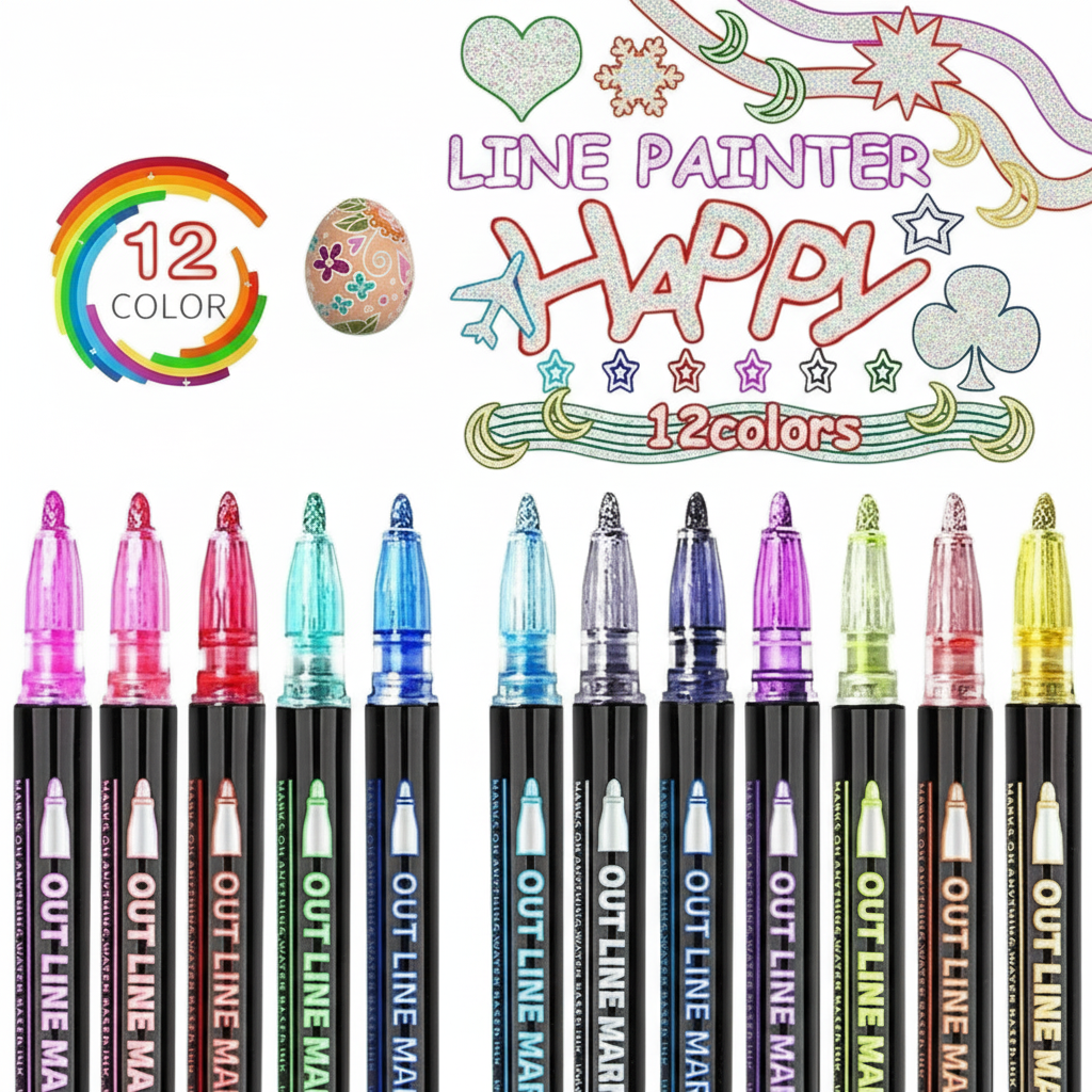 ألوان الدبل لاين هي أقلام جل سحرية ترسم خطّين في نفس الوقت: خط داخلي لامع وخط خارجي ملوّن، لتمنح رسوماتك لمسة فنية مذهلة بدون أي مجهود.