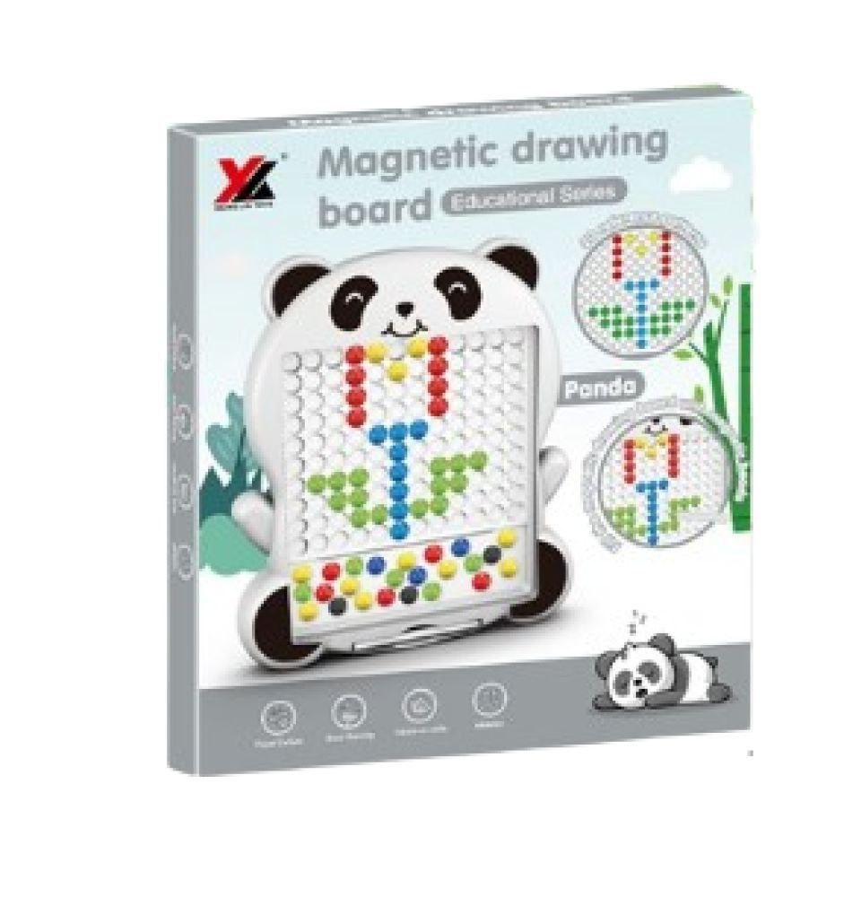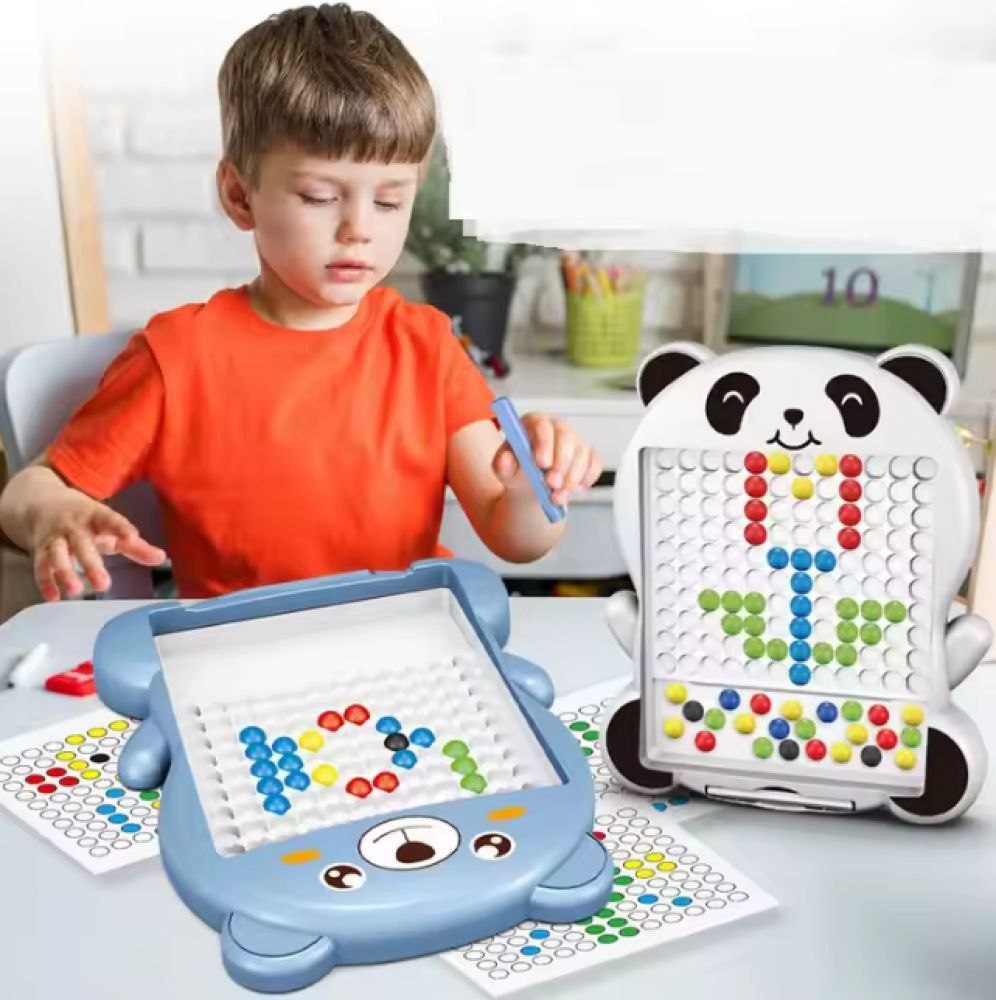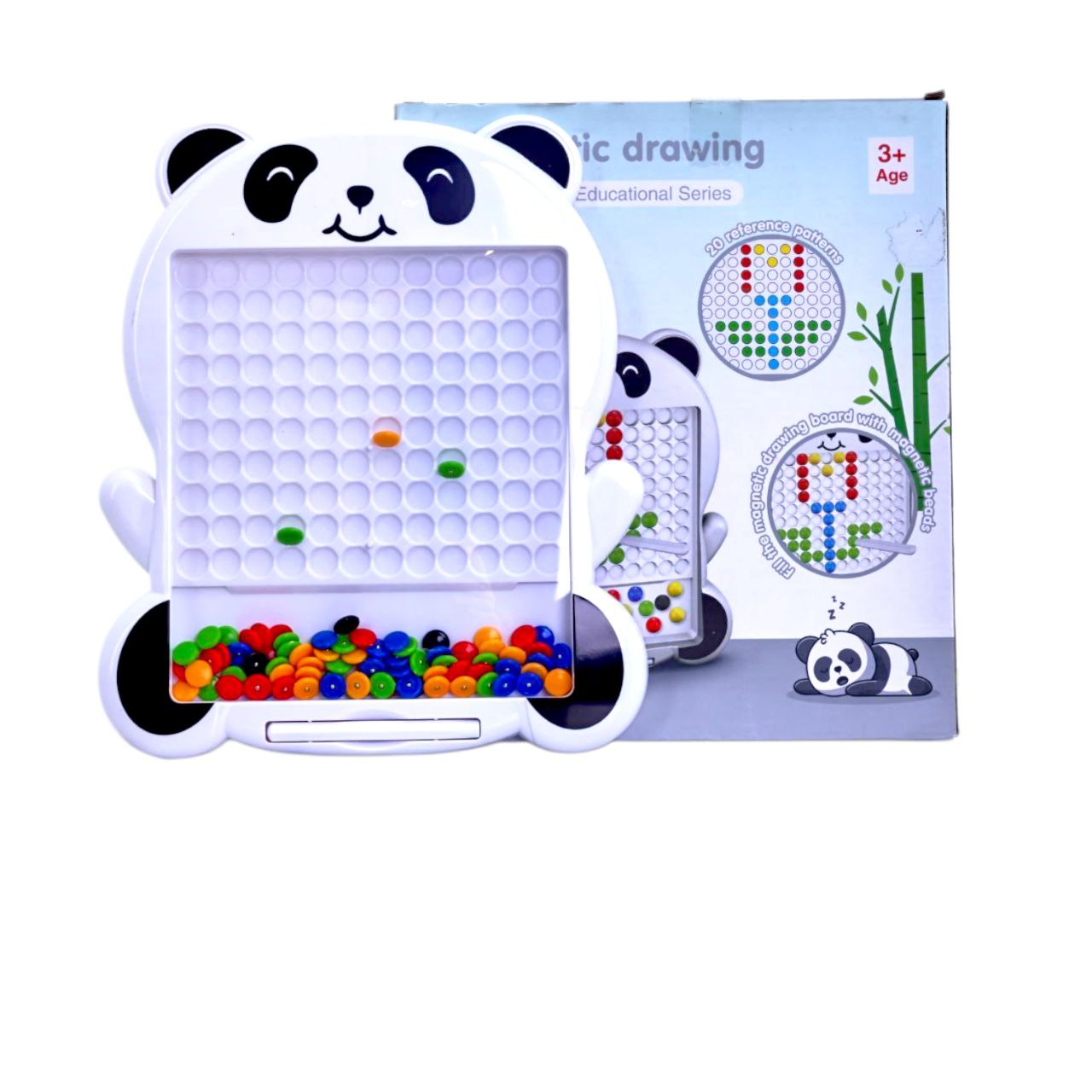 وتبقي الرسم فيها ادام الطفل علي حامل شكل باندا جميله