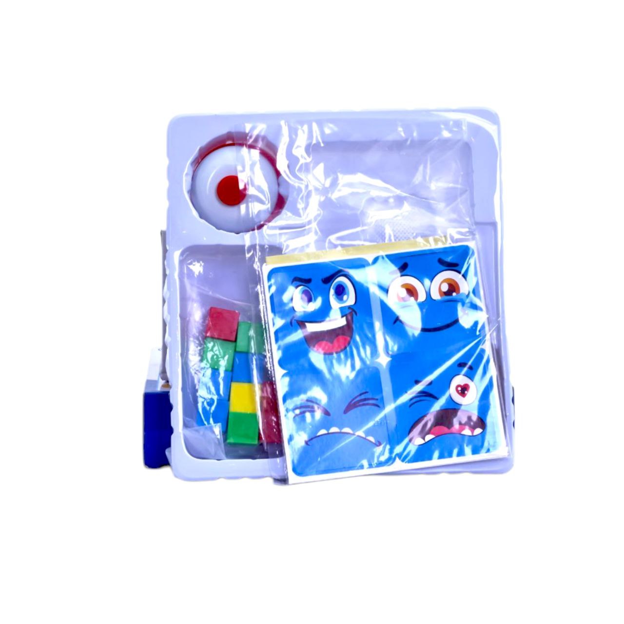 بنقلب كل الكروت على ظهرها و كل واحد بياخد لون من المكعبات و بنكشف كارت و الي بيجمع نفس شكل الكارت الاول وبيضغط على الجرس هو الي بياخد الكارت